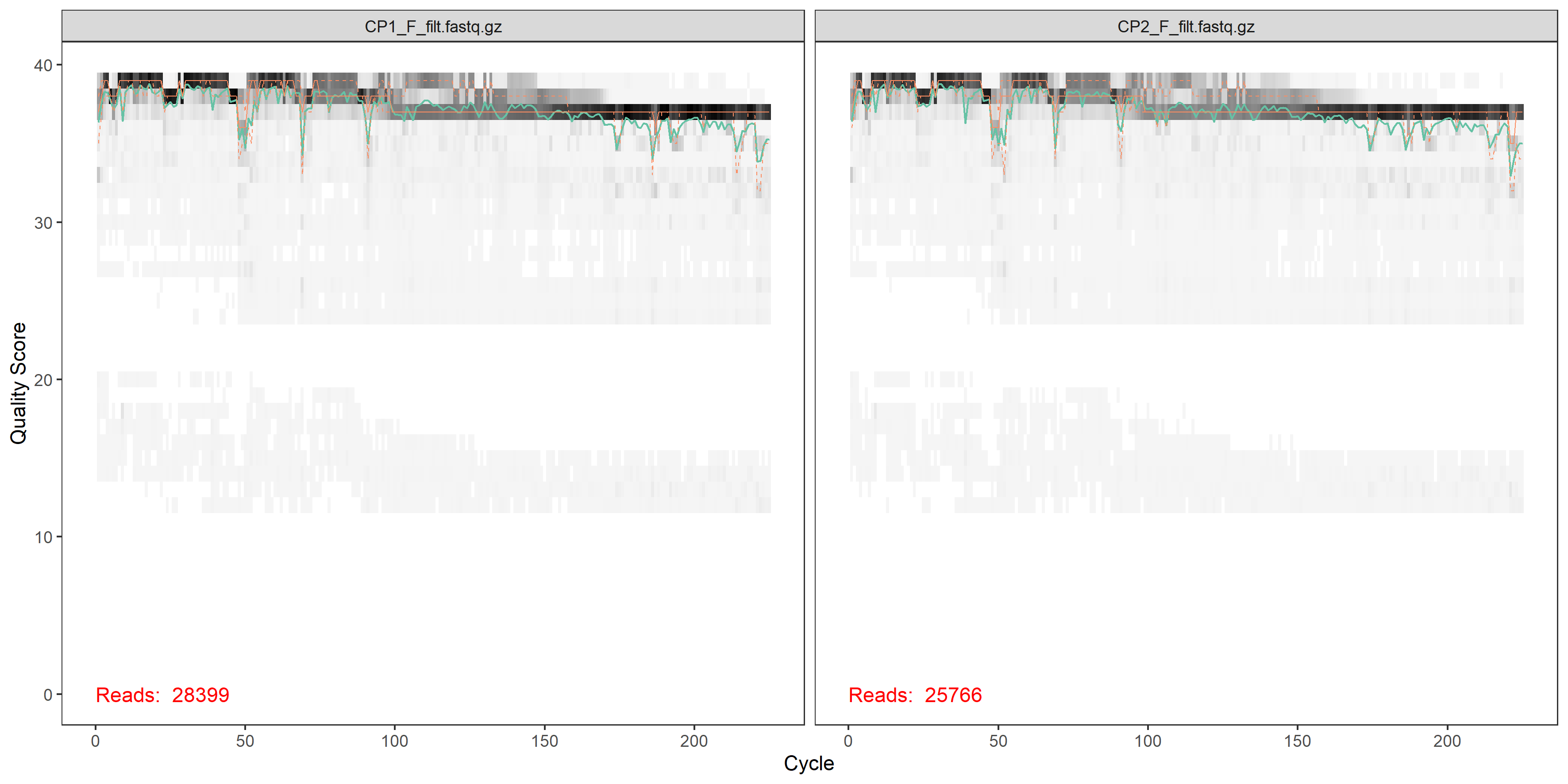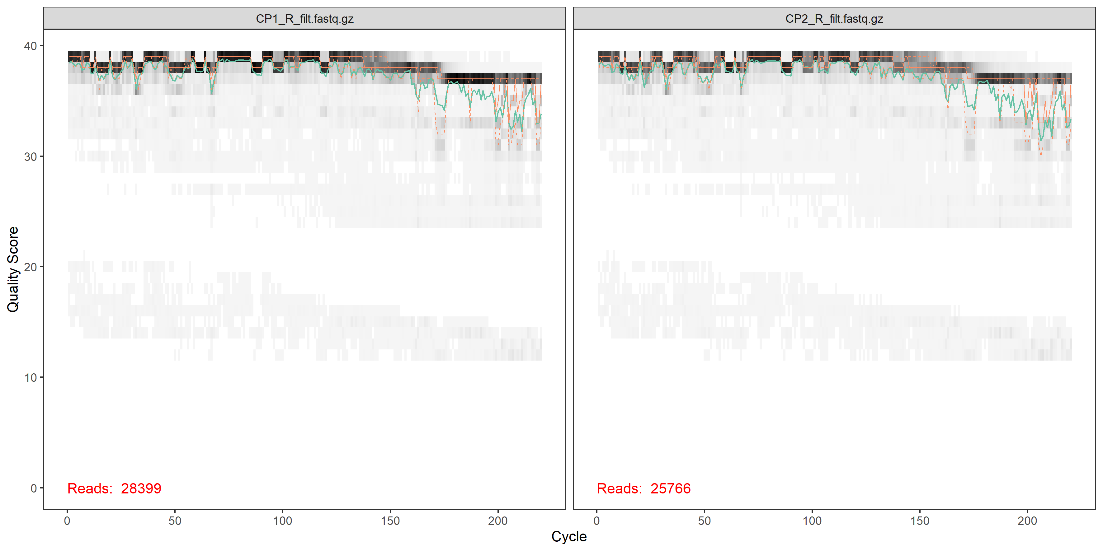 plotQualityProfile(filtRs[1:2])